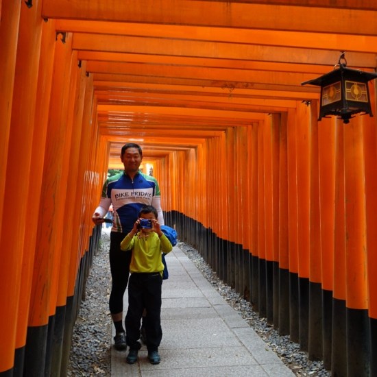 We are cycling from Arashiyana, Kyoto to Nara. First, we stopped Fushimi Inari Shrine and it was crowded by foreign visitors.