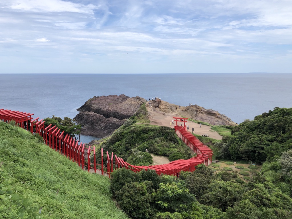 After crossing a pass, we went down the steep slope and finally arrived at Motonosumi inari shrine.