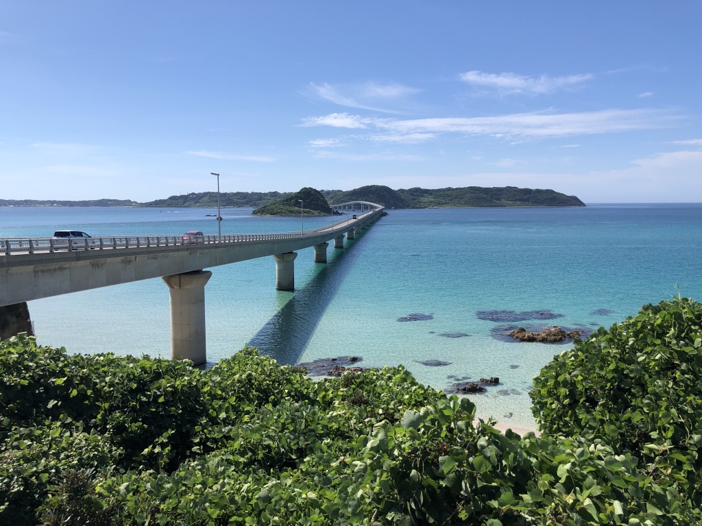 We arrived at Tsunoshima Bridge 角島大橋, which is popular for its beautiful ocean. At the edge of the bridge, I was fascinated by the combination of the blue and clean water and white sand beach.