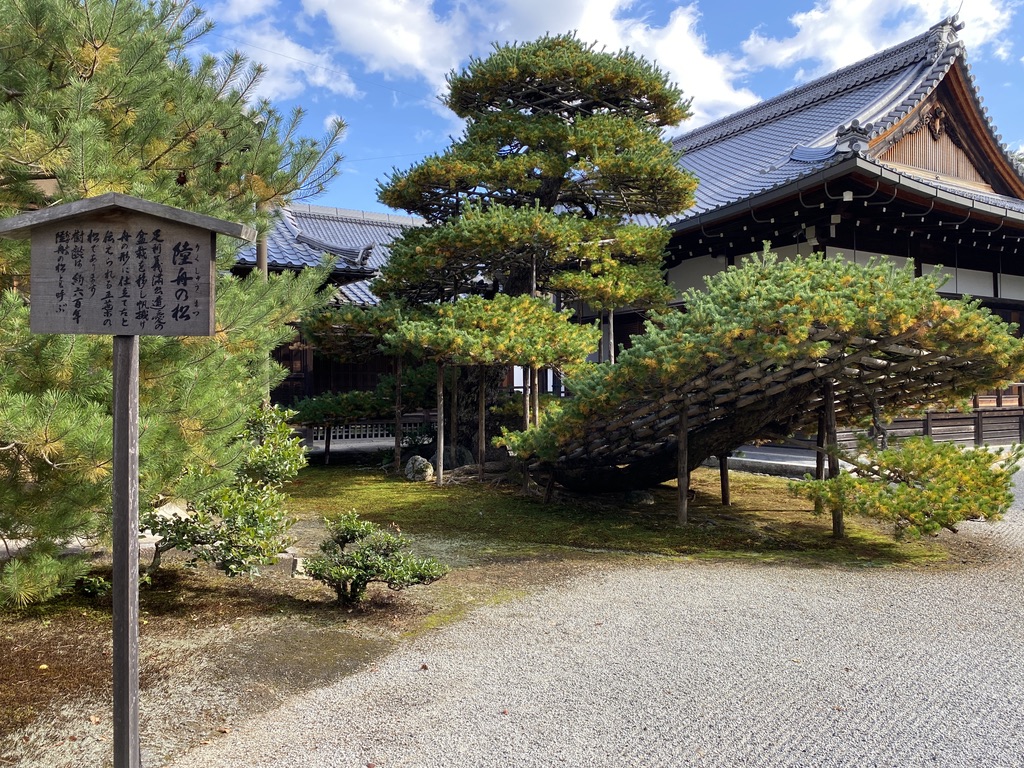 These 600 year old pine trees were transplanted from a bonsai tree which Shogun Yoshimitsu lived and shaped in a form of sailboat.