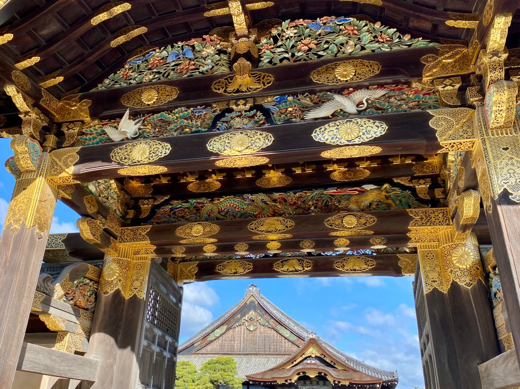 You can find lots of Imperial chrysanthemum crest on the gate. After Shogun returned the political control to the Emperor, Nijo castle became the Imperial Villa.