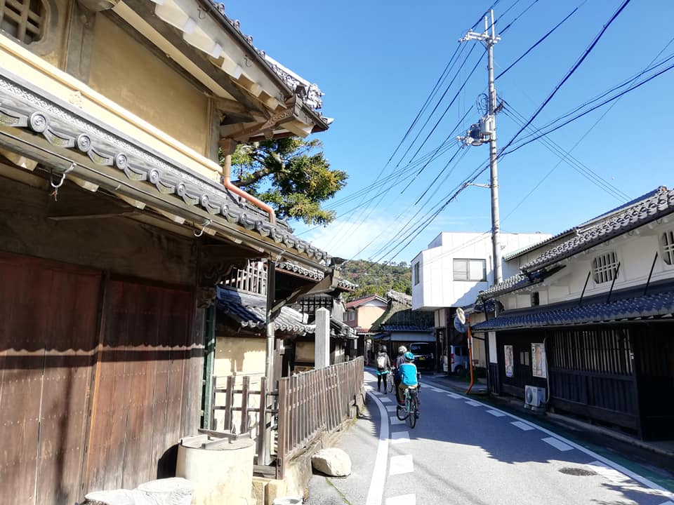 First, we pedaled around the central area of Omi-Hachiman and enjoyed the traditional buildings and landscape.