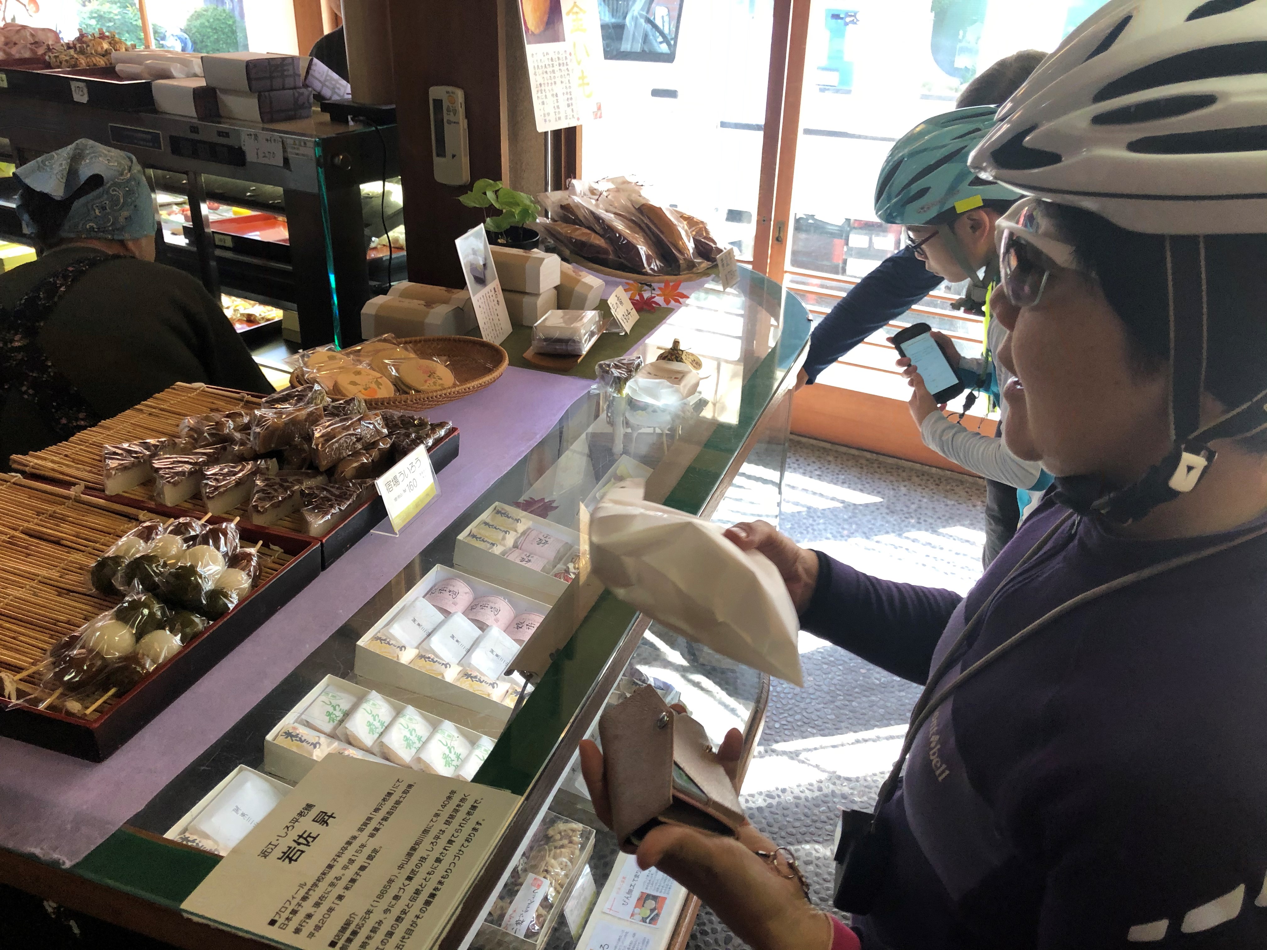 We rode along Nakasendo and stopped Echigawa-juku, station, and ate in Shirohei Rouho, a Japanese confectionery, which started in 1865.